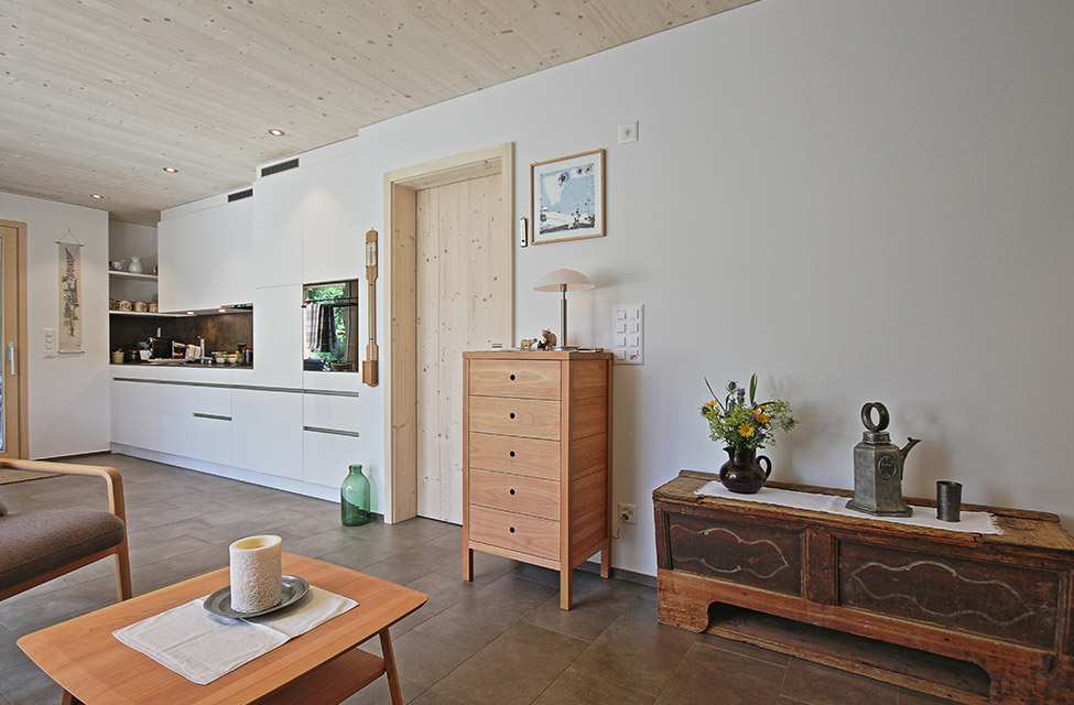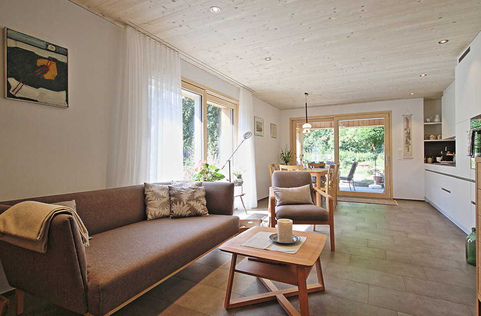 Das 15 x 6.80 Meter kompakte Holzhaus lädt zum Geniessen und Verweilen ein, während die Hausarbeiten auf ein Minimum reduziert werden.